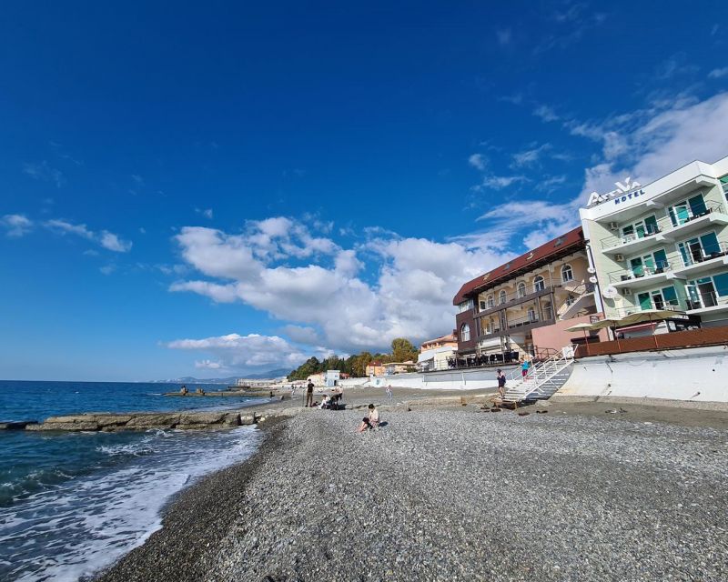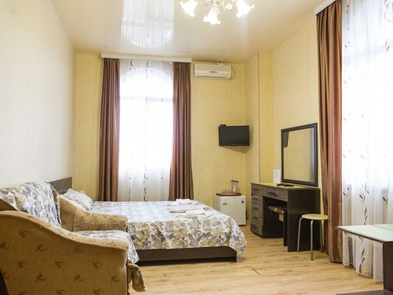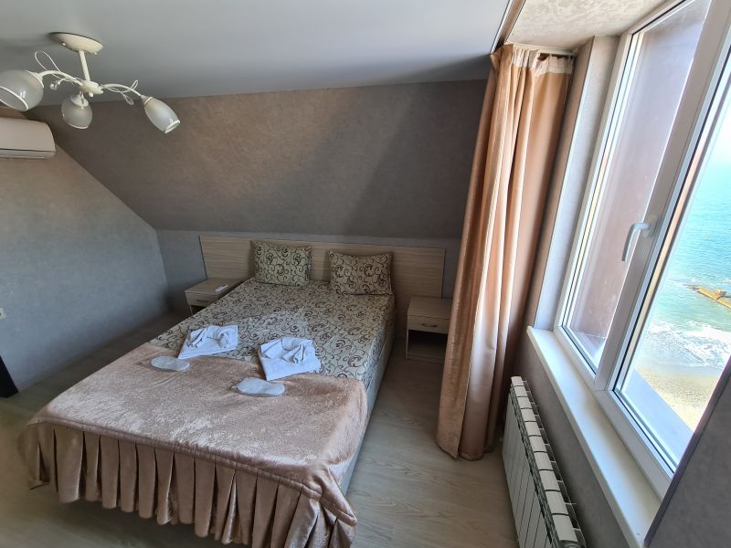 Отель расположен на 1й береговой линии в 20 метрах от моря в центре Адлера. К услугам гостей номер со всеми удобствами в номере. (ванная комната, кондиционер, холодильник, тв, чайник). На этаже для гостей есть СВЧ печь. На 1м этаже расположена столовая. Вокруг множество кафе, магазинов, прокат катамаранов, серф-досок, sup-бордов.